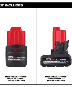 Milwaukee M12 12V Lithium-Ion XC High Output 5.0Ah Battery Pack W/High Output 2.5Ah Battery Pack