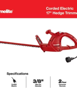 The Homelite 2.7 Amp Electric Hedge Trimmer is the perfect tool to add to your shed. With its 17 in. dual-action steel blades, cutting and cleaning is now fast and easy. The Homelite Electric Hedge Trimmer offers 53% less vibration than other single-action models on the market today leaving your arms and hands with less fatigue. Having up to 3/8 in. cut capacity allows you to tackle those overgrown hedges throughout your lawn and garden. Find the Homelite Electric Hedge Trimmer exclusively at The Home Depot and HomeDepot.com.