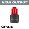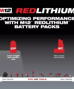 The Milwaukee M12 REDLITHIUM CP2.0 Battery delivers up to 2X more runtime, 20% more power and 2X more recharges than standard lithium-ion batteries. The lithium-ion battery pack features superior pack construction, electronics and performance providing users more work per charge and more work over pack life than any battery on the market. The rechargeable battery also delivers users with 2.0 Ah of runtime. Each battery pack is durably built for heavy-duty use, runs cooler and performs in climates below 0 degree F/minus 18 degree C. Its compact, lightweight design allows users to work in tight work spaces and reduces fatigue. Built-in REDLINK Intelligence protects the battery from overloads, preventing users from damaging their cordless power tools in heavy-duty situations, while the discharge protection prevents cell damage. An integrated temperature management system and individual cell monitoring help to maximize battery life. Switch to Milwaukee’s REDLITHIUM CP2.0 Compact Battery Pack to instantly upgrade the runtime and durability of Milwaukee M12 cordless tools.
