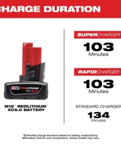 The Milwaukee M12 REDLITHIUM XC6.0 Battery Pack delivers up to 3x more runtime, 20% more power and 2x more recharges than standard lithium-ion batteries. The lithium-ion battery pack features superior pack construction, electronics, and performance providing users more work per charge and more work over pack life than any battery on the market. The rechargeable battery also delivers users with 5.0 Amp-hours of runtime. Each battery pack is durably built for heavy-duty use, runs cooler, and performs in climates below 0 degree F/minis 18 degree C. Its compact, lightweight design allows users to work in tight work spaces and reduces fatigue. Built-in REDLINK Intelligence protects the battery from overloads, preventing users from damaging their cordless power tools in heavy-duty situations, while the discharge protection prevents cell damage. An integrated temperature Management system and individual cell monitoring help to maximize battery life. Switch to Milwaukee’s REDLITHIUM XC6.0 Battery Pack to instantly upgrade the runtime and durability of Milwaukee M12 cordless tools.