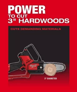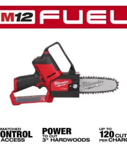 The Milwaukee M12 FUEL HATCHET 6 in. Pruning Saw delivers unmatched control and access, has the power to cut 3 in. hardwoods and delivers up to 120 cuts per charge. This electric pruning saw is designed to meet the ergonomic, performance and durability needs of landscape maintenance professionals. Weighing less than 5 lbs and featuring a compact design, the cordless pruning saw gives users increased control and maneuverability in tight access areas. The POWERSTATE Brushless Motor delivers the power to complete cuts in demanding hardwood materials. The REDLINK PLUS Intelligence enables full-circle communication between the tool and battery, providing users with unmatched levels of performance, protection and productivity. The advanced electronic package also delivers an instant throttle response and a variable speed trigger for ultimate control over the power range. The M12 REDLITHIUM XC 4.0Ah Battery (sold separately) delivers best in class run-time and performance. This pruning saw features a full house chain, easy access chain tensioner, automatic oiler, metal bucking spikes and onboard storage for the scrench. The M12 FUEL HATCHET 6 in. Pruning Saw is part of the M12 System which is fully compatible with over 100 solutions. In addition to the Pruning Saw (2527-20), this product includes 1 Oregon 6 in. Bar and Chain, 1 Scabbard and 1 Scrench.