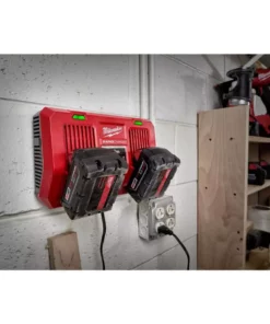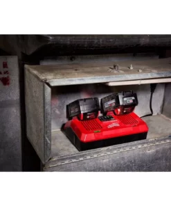 The Milwaukee M18 Dual Bay Simultaneous Rapid Charger is capable of allowing users to charge 2 batteries at the same time, over 3X faster than standard sequential chargers. Equipped with REDLINK Intelligence, this battery charger communicates directly with all M18 batteries to monitor cell voltage, temperature and charge status to deliver the best combination of charge duration and battery lifespan. Charging batteries simultaneously at a Rapid Charge rate massively reduces downtime and maximizes productivity. The M18 Dual Bay Simultaneous Rapid Charger is perfect for professional users who charge and swap battery packs throughout the day. Its compact size and integrated hang holes make this an ideal charger to carry on and off the job, hang in a work trailer or charge on the top shelf of a job box.