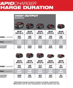 - Includes: one 48-59-1802 M18 dual bay rapid charger and 1 M18 REDLITHIUM High Output CP3.0 battery pack