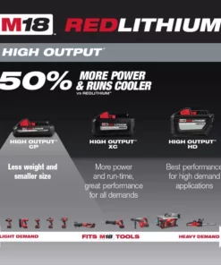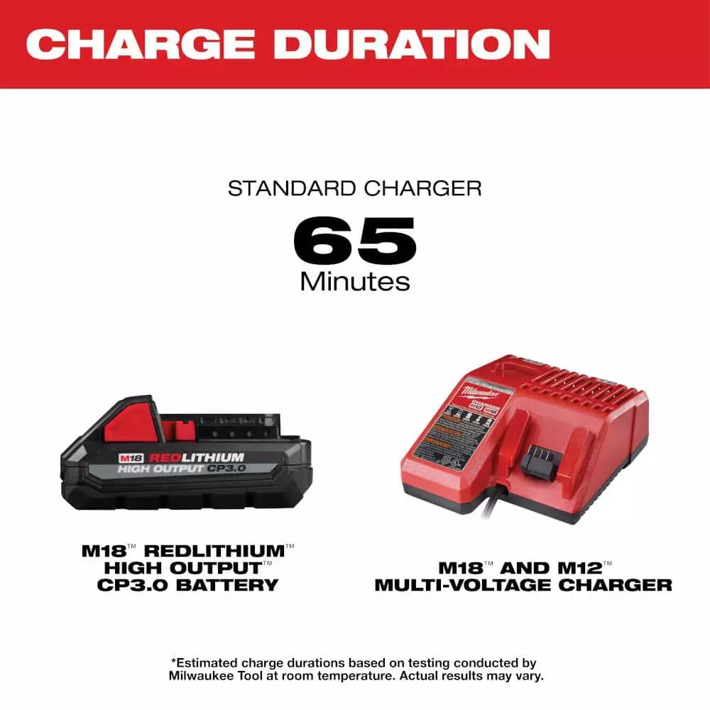 - Includes: (1) M18 REDLITHIUM HIGH OUTPUT CP3.0 Battery Pack, (1) M18 & M12 Charger