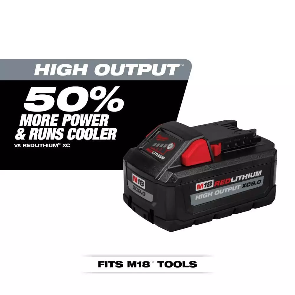 - Includes: one M18 REDLITHIUM HIGH OUTPUT XC 8.0 battery pack