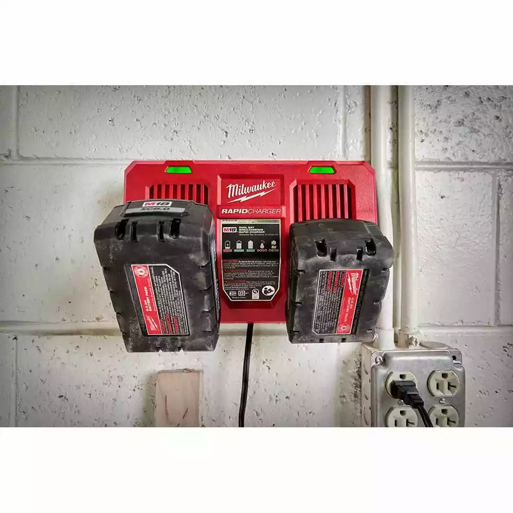 - Includes: one M18 Dual Bay simultaneous rapid charger two M18 REDLITHIUM XC 5.0 extended capacity battery pack
