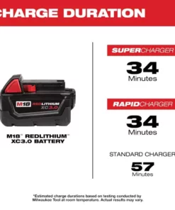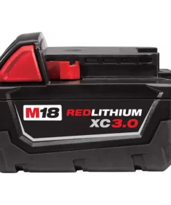 The MILWAUKEE M18 REDLITHIUM XC3.0 Battery delivers up to 2X more runtime, 20% more power and 2X more recharges than standard lithium-ion batteries. The lithium-ion battery pack features superior pack construction, electronics, and performance providing users more work per charge and more work over pack life than any battery on the market. The rechargeable battery also delivers users with 3.0 amp-hours of runtime. The pack is durably built for heavy-duty use, runs cooler, and performs in climates below 0°F/-18°C. Built-in REDLINK Intelligence protects the battery from overloads, preventing users from damaging their cordless power tools in heavy-duty situations, while the discharge protection prevents cell damage. An integrated temperature management system and individual cell monitoring help to maximize battery life. Switch to Milwaukee’s REDLITHIUM XC3.0 Battery Pack to instantly upgrade the runtime and durability of Milwaukee M18 cordless tools.