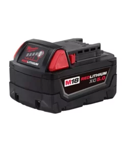 The Milwaukee M18 REDLITHIUM XC 5.0 Ah Battery Pack delivers up to 2.5X more runtime, 20% more power and 2X more recharges than standard lithium-ion batteries. The lithium-ion battery pack features superior pack construction, electronics and performance providing users more work per charge and more work over pack life than any battery on the market. The rechargeable battery also delivers users with 5.0 Amp-hours of runtime. Each battery pack is durably built for heavy-duty use, runs cooler and performs in climates below 0 degree F/minus 18 degree C. This protection routes water away from the electronics and out of the battery pack, extends the users’ battery run-time and life by minimizing heat and prevents pack failures from vibration or drops. Built-in REDLINK Intelligence protects the battery from overloads, preventing users from damaging their cordless power tools in heavy-duty situations, while the discharge protection prevents cell damage. An integrated temperature Management system and individual cell monitoring help to maximize battery life. Switch to Milwaukee’s REDLITHIUM XC5.0 Battery Pack to instantly upgrade the runtime and durability of Milwaukee M18 cordless tools.