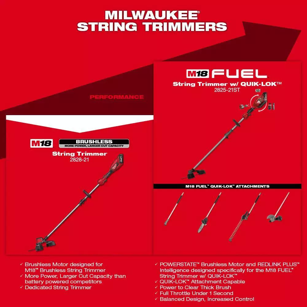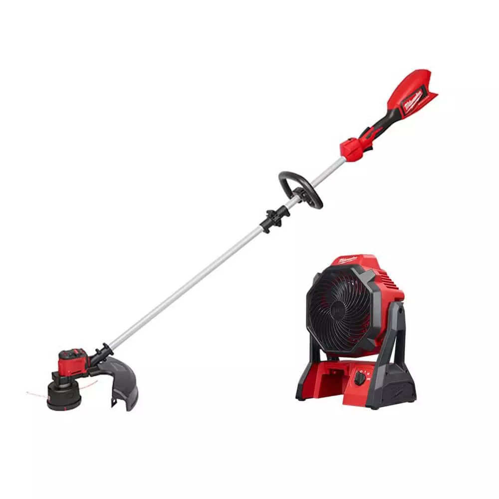 The Milwaukee M18 Brushless String Trimmer delivers more clearing power and a larger cutting swath than battery-powered competitors. The brushless motor was built and optimized specifically for trimming applications and provides up to 6,200 RPM. Paired with REDLINK Intelligence and an M18 REDLITHIUM HIGH OUTPUT battery, the trimmer provides efficient power delivery allowing for longer run-time. The trimmer features high and low speed settings with a variable speed trigger. High-speed provides the power to take on demanding applications and low-speed maximizes run-time while having plenty of power for grass trimming. The 16 in. cutting swath trims more grass in a single pass, which increases productivity. The Easy Load Trimmer Head delivers an easy line loading experience and the ability to load up to 25 ft. of trimmer line in under 30-seconds. The M18 Jobsite Fan provides the most powerful airflow and unmatched run-time in a compact size. The 0886-20 can circulate air over 40 ft. making it ideal for drying or cooling on a variety of jobsites. This tool kit includes 1 M18 Brushless String Trimmer (2828-20), 1 M18 REDLITHIUM HIGH OUTPUT XC 6.0 Ah Battery (48-11-1865) and 1 M18 and M12 Charger (48-59-1812), 1 M18 Jobsite Fan.
