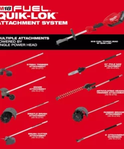 - 2825-21ST M18 FUEL string trimmer: part of the M18 FUEL QUIK-LOK attachment system featuring 8 compatible attachments