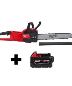 The Milwaukee M18 FUEL 16 in. Chainsaw delivers the power to cut hardwoods, cuts faster than gas, and delivers up to 150 cuts per charge. The unit is designed to meet the performance, durability and ergonomic needs of professional landscape maintenance and power utility. The POWERSTATE Brushless Motor maintains speed under heavy loads without bogging down to outperform small gas engines and higher voltage systems. REDLINK PLUS intelligence ensures maximum performance and protection from overload, overheating and over discharge. The Milwaukee M18 REDLITHIUM XC 5.0 Ah Battery Pack delivers up to 2.5X more runtime, 20% more power and 2X more recharges than standard lithium-ion batteries. The lithium-ion battery pack features superior pack construction, electronics, and performance providing users more work per charge and more work over pack life than any battery on the market.