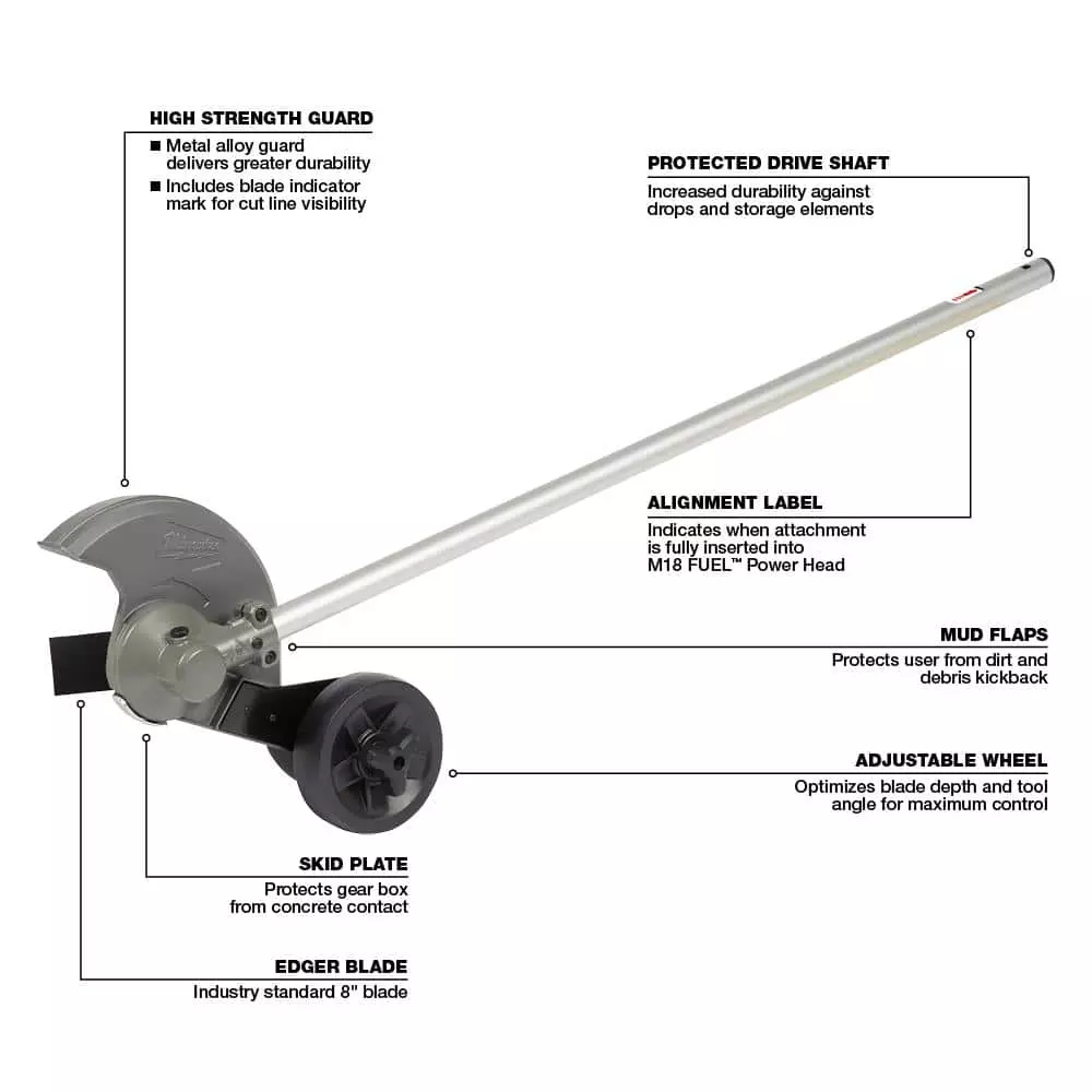 - 49-16-2718 edger attachment features high strength guard: metal alloy guard delivers greater durability and includes blade indication for cut-line visibility