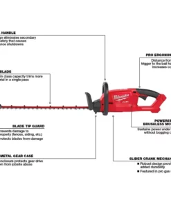 The M18 FUEL Hedge Trimmer has the power to cut 3/4 in. branches, cuts up to 30% faster and provides up to 2-hours of run time per charge. Designed to meet landscape maintenance professional needs, the handle placement and weight distribution provide the best combination of balance and control. The trimmer features a slider-crank mechanism and all-metal gear case providing unmatched durability and longer life. The 24 in. blade trims more material in a single pass, increasing reach and productivity. The blade tip guard prevents damage to the property and the blades. The M18 FUEL Hedge Trimmer is fully compatible with 200 plus solutions on the M18 system. The Milwaukee M18 REDLITHIUM XC 5.0 Ah Battery Pack delivers up to 2.5X more runtime, 20% more power and 2X more recharges than standard lithium-ion batteries. The lithium-ion battery pack features superior pack construction, electronics, and performance providing users more work per charge and more work over pack life than any battery on the market.