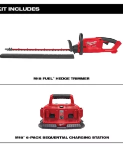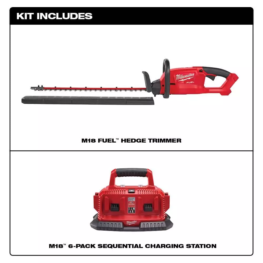 - Includes: 1 M18 FUEL hedge trimmer (2726-20) and a M18 6-port charger (48-59-1806)