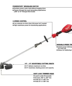The Milwaukee M18 FUEL String Trimmer with QUIK-LOK, designed for landscape maintenance professionals, provides users with the power to clear thick brush, reaches full throttle in under 1-second and delivers up to 1-hour of run-time per charge. The cordless string trimmer is made up of 2 components the M18 FUEL Power Head w/ QUIK-LOK and QUIK-LOK String Trimmer Attachment. This M18 FUEL Power Head, part of the QUIK-LOK Attachment System, is compatible with multiple attachments such as an Edger, Articulating Hedge Trimmer, and Pole Saw attachment. This gives users the ability to quickly swap out attachments on a single Power Head, delivering ultimate versatility and a lower cost of ownership. The POWERSTATE Brushless Motor delivers up to 6,200 RPM with up to a 16 cutting swath, and gives you the power to maintain speed in demanding applications without bogging down. The motor is positioned in the rear of the trimmer to provide the best combination of power, balance, and maneuverability. REDLINK PLUS intelligence ensures maximum performance while protecting from overload, overheating and over discharge. The Milwaukee M18 REDLITHIUM XC 5.0 Ah Battery Pack delivers up to 2.5X more runtime, 20% more power and 2X more recharges than standard lithium-ion batteries. The lithium-ion battery pack features superior pack construction, electronics, and performance providing users more work per charge and more work over pack life than any battery on the market.