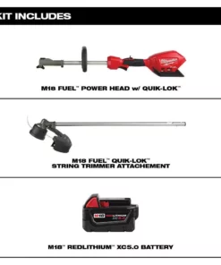 - Includes: M18 FUEL power head with QUICK-LOK (2825-20) and M18 FUEL QUIK-LOK string trimmer attachment (49-16-2717), one 48-11-1850 M18 XC 5.0 Ah battery pack