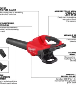 - 2824-20 M18 FUEL dual battery blower: POWERSTATE brushless motor delivers 600 CFM and 145 MPH