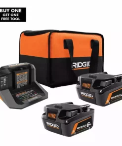 RIDGID introduces the 18V 6.0 Ah and 4.0 Ah MAX Output Lithium-Ion Batteries and Charger Kit with Bag. MAX Output batteries facilitate battery and tool communication unleashing the full potential of any RIDGID 18V Brushless Tool providing more power and more runtime. The Advanced Intelligent Electronics in MAX Output Batteries enable users to power through the most demanding applications on the jobsite. The RIDGID 6.0 Ah MAX Output battery will provide up to 5X more runtime compared to the 1.5 Ah lithium-ion battery (R870015). Along with improved performance, the 6.0 Ah MAX Output Battery is also 23% more compact than the previous model (R8400806). The 4.0 Ah MAX Output Battery will provide up to 3X more runtime compared to the 1.5 Ah lithium-ion battery (AC870015). The RIDGID MAX Output 4.0 Ah battery is compact and lightweight, which reduces user fatigue. The included 18V Charger is compatible with all RIDGID batteries. As always, these RIDGID MAX Output Batteries are 100% compatible with all RIDGID 18V Tools. Best of all, this kit is eligible for the Industry’s Only Lifetime Service Agreement, simply register within 90 days of purchase for FREE Parts, FREE Service, For LIFE. The RIDGID AC840060SB1 Kit includes an 18V 6.0 Ah MAX Output Battery, an 18V 4.0 Ah MAX Output Battery, an 18V Charger, a bag, and operator’s manual.
