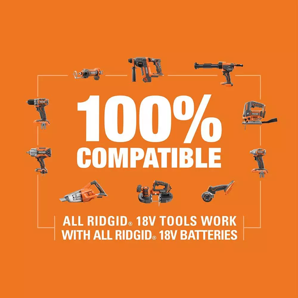 - 100% Compatible: Works with all RIDGID 18V Batteries, Tools and Chargers