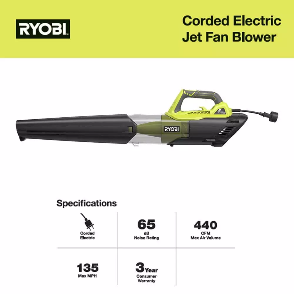 For the power of jet fan technology with a lightweight and easy-to-use design, the new Electric Jet Fan Blower is the perfect tool. This blower features a 2 speed switch, allowing the user to choose the level of power. With air speed up to 135 MPH and air volume up to 440 CFM, this blower can easily tackle wet and dry leaves around the house. A soft grip handle ensures comfort from start to finish. Backed by a 3-year warranty.