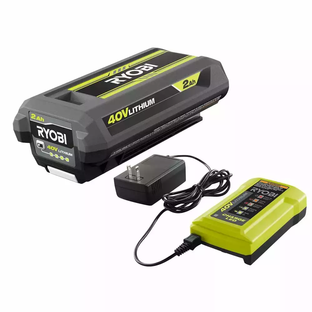 - Includes RYOBI 40V 2.0 Ah lithium battery and charger