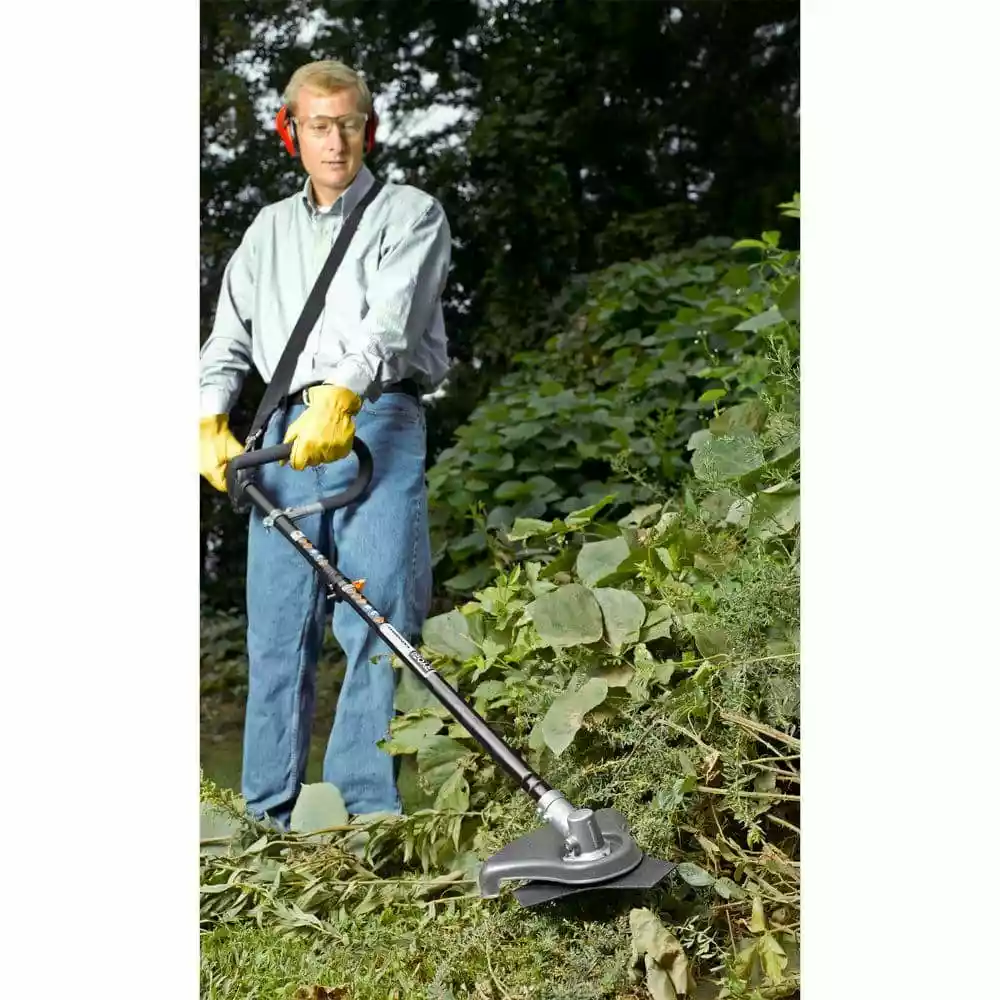 The RYOBI Expand-It 8 in. Brush-Cutter Attachment for Trimmer helps you eliminate unsightly weeds and pulpy stalks from your yard. The straight-shaft attachment can be used with RYOBI, Toro, Weed Eater and Troy Bilt Trimmer.