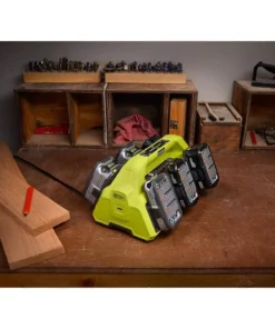RYOBI introduces the 18V ONE+ 6-Port Dual Chemistry IntelliPort SUPERCHARGER with USB Port. IntelliPort Technology allows users to maximize battery life while requiring less charging time than standard chargers. Featuring a 2 Amp USB Port allows users to charge smart devices while charging ONE+ batteries. The indicator lights show the battery and port status as batteries are charged and maintained. The charger includes sensors to determine whether your batteries are either too hot or too cold to charge and alert you with temperature indicator lights. This unit can charge both lithium-ion and Ni-Cd batteries in the RYOBI ONE+ series. Best of all, it is part of the RYOBI ONE+ System of over 260 Cordless Tools that all work on the same battery platform. Backed by the RYOBI 3-Year Manufacturer’s Warranty, this 18V ONE+ 6-Port Dual Chemistry IntelliPort SUPERCHARGER with USB Port includes an operator’s manual. Batteries sold separately.