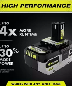 These RYOBI ONE+ 18V Lithium-ion HIGH PERFORMANCE 4Ah batteries provide up to 4X more runtime, 30% more power, and runs cooler compared to our standard lithium-ion batteries to provide long-lasting reliability and better performance in over 225 ONE+ tools. These HIGH PERFORMANCE batteries also feature the most advanced on-board battery electronics that monitor voltage, temperature, and current to extend the life of the battery. When you pair these HIGH PERFORMANCE batteries with any ONE+ HP tool, advanced technology allows them to communicate to provide the best performance possible that powers through heavier applications and protects against overloading and overheating. They perform in extreme weather temperatures and are engineered to be impact resistant. These batteries features integrated LED fuel gauges to check your battery charge at all times. Best of all, they are a part of the RYOBI ONE+ System of over 225 Cordless Tools that all work on the same battery platform. Backed by the RYOBI 3-Year Manufacturer’s Warranty, these batteries include an operator’s manual. Charger sold separately.