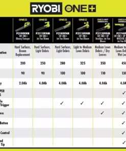 - Works with all RYOBI ONE+ 18V Lithium batteries