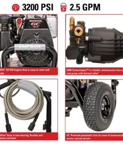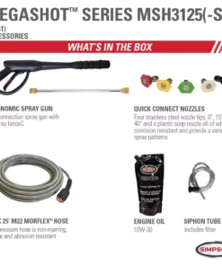 The Simpson MegaShot Series is perfect for the “Do-it-Yourselfer” looking for maximum performance with minimal investment. Simple to use and great for cleaning decks, patios, outdoor furniture, house siding and prepping home exteriors for painting. Its compact design is lightweight and small enough to be easily transported by one person. Equipped with premium HONDA, KOHLER or Simpson OHV engines built with high-quality components, designed for optimum performance and renowned for being easy to start.