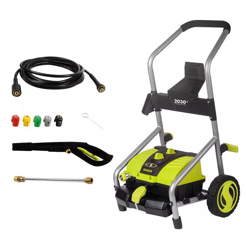 Tackle your toughest home, outdoor and auto cleaning projects with ease with the Sun Joe SPX4000 Electric Pressure Washer. Packed with 1800-Watt of pure power, the 14.5 Amp motor generates up to 2030 PSI to demolish every last bit of dirt, grease, gunk and grime. Five Quick-Connect tips allow you to go from intense jet to gentle spray to suit the cleaning task and the onboard 54.1 fl oz. detergent tank lets you dial-in just the right amount of detergent to give your cleaning blast a boost. Featuring Sun Joe’s exclusive Pressure-Select Technology, the SPX4000 lets you pick the perfect pressure to combat dirt and grime with professional results and a Total Stop power-saving system designed to save energy and prolong pump life when the trigger is not engaged. Cut your outdoor cleaning chores down to size and Go With Joe – the SPX4000 Electric Pressure Washer from Sun Joe. Get Equipped.