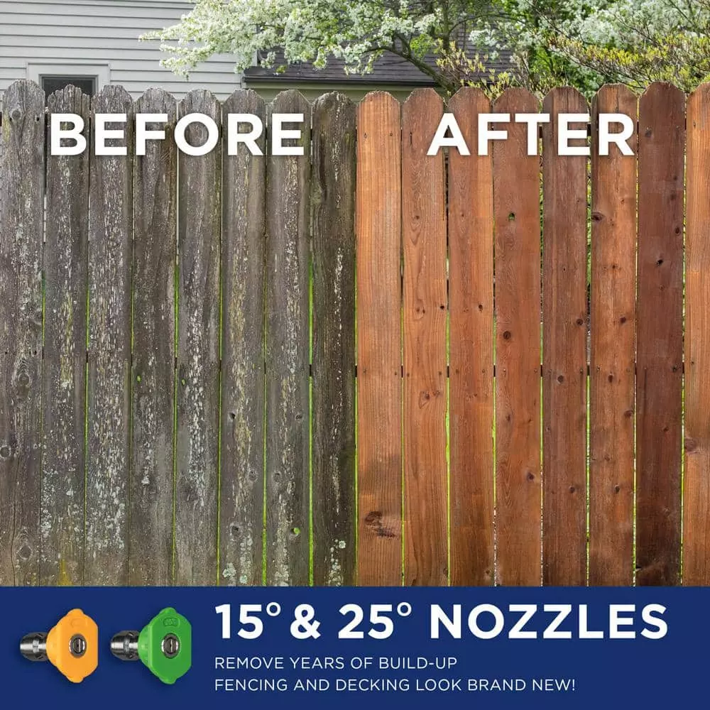 - 5 Quick Connect nozzles: 0°, 15°, 25°, 40°, and soap applicator tip for adjustable spray