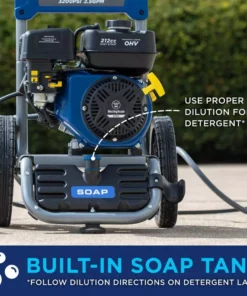 - Add your own chemical or detergent for extra cleaning power with 0.5 gal. soap tank