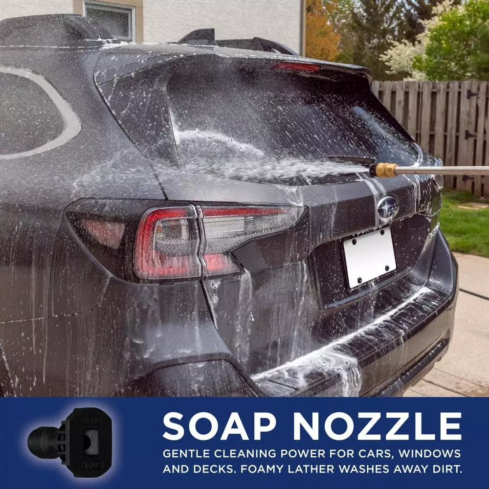 - 5 quick connect nozzles: 0°, 15°, 25°, 40° and soap applicator tip for adjustable spray